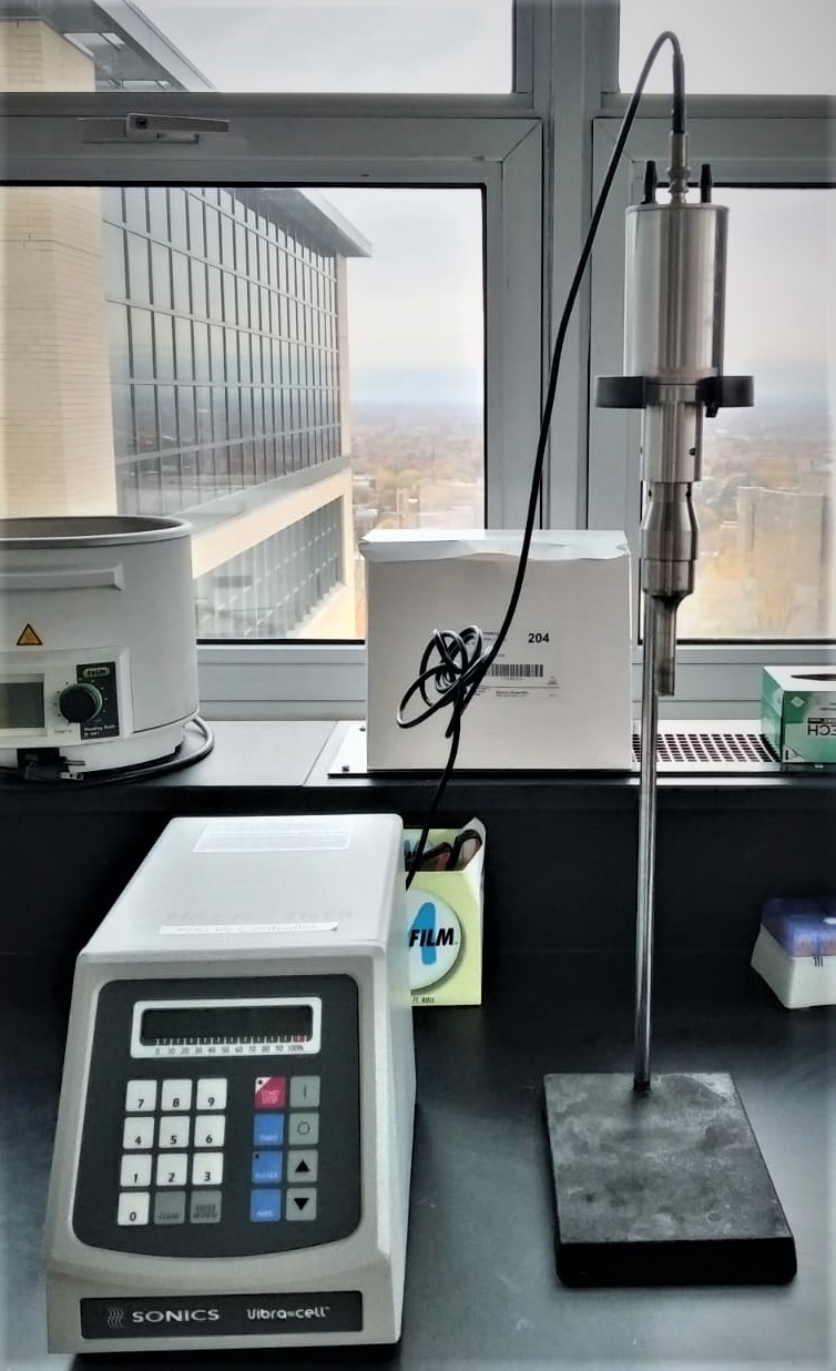 The EPIC lab is equipped with a variety of ultrasound processors (20 and 30 kHz) of nominal powers ranging from 130 W to 750 W, with tunable amplitude.
