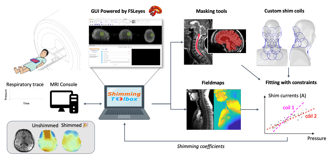 - Description: To obtain a nice image inside the body, an MRI device assumes that the main magnetic field (B0) is homogeneous and stable over time. Unfortunately (or fortunately for the subject), subjects breathe while in the scanner. When subjects breathe, the B0 field varies in time and space. The NeuroPoly laboratory, in collaboration with Dr. Stockmann (Harvard/MIT), has developed hardware and software methods to compensate for these variations. The principle is based on the development of so-called "shim" coils, in which a direct current circulates, generating a magnetic field (Biot-Savart law) which compensates for the inhomogeneities of the B0 field. To orchestrate these complex experiments, the NeuroPoly laboratory has also developed free software: https://shimming-toolbox.org. We recruit Master/PhD/Postdoc students to work on real-time shimming projects. Examples of projects: implementation of optimization methods to find the right shim current combinations for each coil element (taking into account physical constraints, such as the maximum allowed current and dB/dt), experimentation with human subjects at 3T and 7T (taking measurements, image analysis), comparison and implementation of robust methods to map the B0 field, dynamic and real-time shimming of the spinal cord at 7T. The research will be conducted at the NeuroPoly laboratory (Polytechnique, Université de Montréal, www.neuro.polymtl.ca), at the Montreal Neurological Institute (MNI, McGill University) and in collaboration with the Martinos Center (Harvard/MIT).