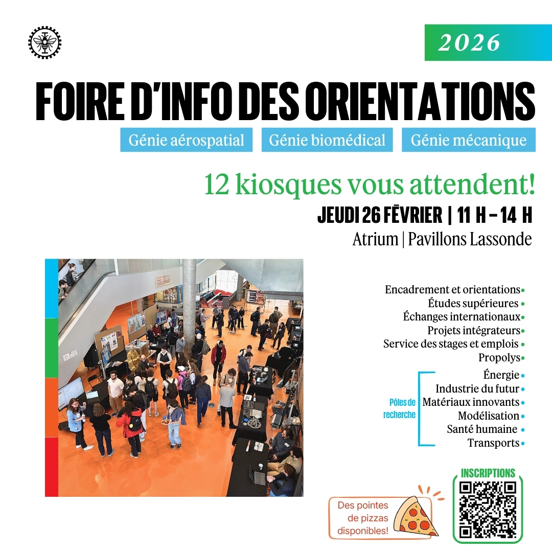 Chaque année, le Comité des Étudiants en Génie Mécanique (CEGM) et le Comité des Étudiants en Génie Aérospatial (CEGA) collaborent pour organiser la Semaine Mécanique-Aérospatiale. Les deux comités s'unissent pour organiser une semaine dédiée aux professions dans le domaine du génie mécanique et du génie aérospatial.