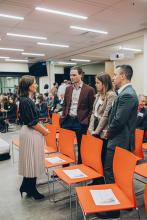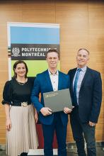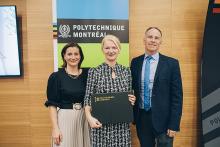 Plus d'une centaine de personnes, réunies à la Galerie Rolland, ont félicité des membres du corps professoral et de la communauté étudiante de Polytechnique Montréal pour des honneurs reçus de la part d'organismes et institutions québécoises, canadiennes ou internationales au cours de la dernière année.